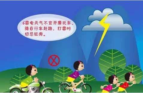 雷雨中最好不要奔跑,更不适宜开摩托车、骑自行车,在雷雨中快速移动容易遭雷击;