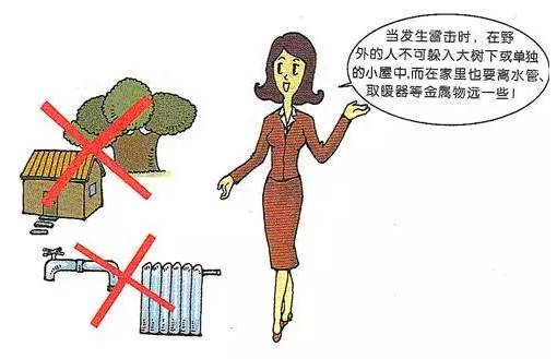 1. 严禁奔跑,不要张嘴,应立即双膝下蹲,同时双手抱膝,胸口紧贴膝盖,尽量低下头,因为头部较之身体其他部位最易遭到雷击;