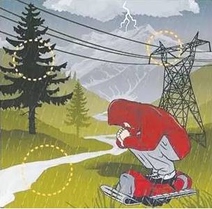 4. 如果在户外看到高压线遭雷击断裂,因为高压线断点附近存在跨步电压,身处附近的人千万不要跑动,应双脚并拢跳离。